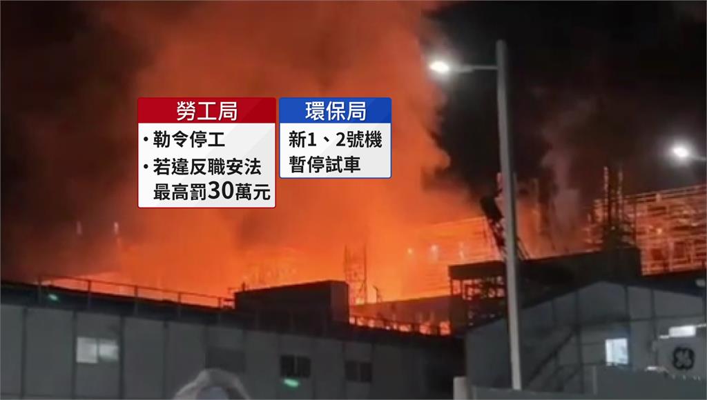 針對興達電廠,勞工局已勒令停工,若查證違反職安法,最高可罰30萬元,也要求新1、2號機暫停試車,不改善就不能繼續運轉。