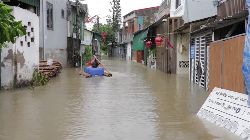 洪水造成街道淹水,民眾只能划著簡易竹筏外出。圖/路透社、美聯社「博羅依」挾帶的風雨重創越南多地,沿海一度掀起約8公尺巨浪。河靜省是受創最嚴重地區之一,初步統計有超過4萬棟房屋受損;廣治省傳出船隻擱淺、民宅屋頂被掀起,路樹連根橫躺在路中央阻斷交通。義安省機車幾乎全倒、公車亭被吹得搖搖欲墜,當地居民形容「這是生平遇過最猛烈的風暴之一」。