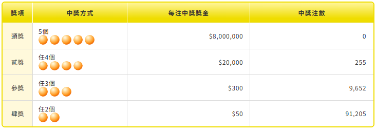 今彩539派彩結果出爐。圖/台視新聞(資料畫面) 台灣彩券今(1)日開出第114000238期「今彩539」,中獎號碼為 03、05、12、22、27,不過台彩稍早公告,本期頭獎無人中獎,貳獎則開出 255注,每注可獲得獎金2萬元。責任編輯/蔡尚晉