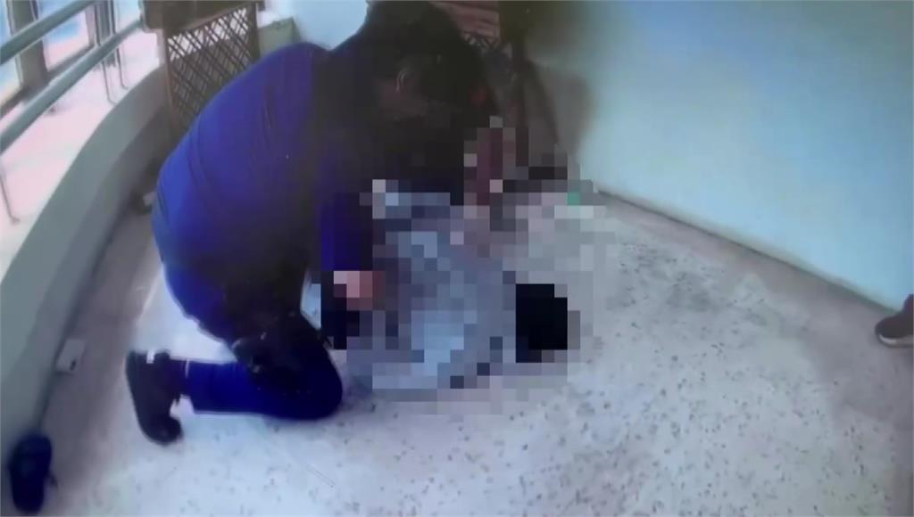 警方壓制過程中受傷。圖/台視新聞男子不但拒捕還持筆攻擊,導致兩名員警受傷,且男子不但在勞工局大鬧,也常去派出所鬧事,據前鎮分局偵查隊副隊長林鈺燕表示,「男子違反刑法第135條妨害公務、第277條傷害罪及社會秩序維護法、第68條藉端滋擾,調查後移請高雄地方檢察署偵辦。」