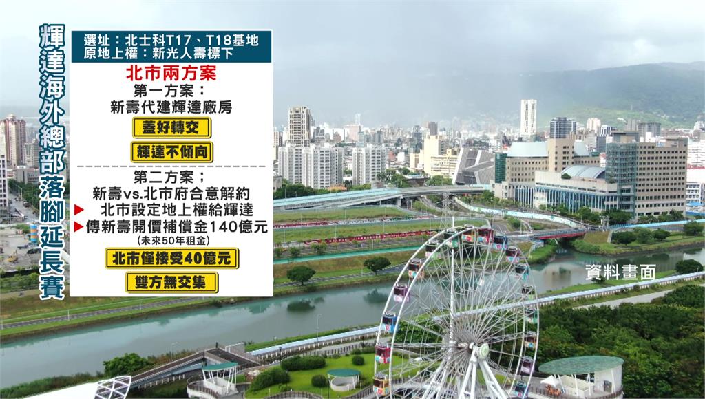 北市擬定兩方案,第一種是由新壽代建廠房,蓋好轉交,但輝達不喜歡這種方式;第二方案,新壽與北市合意解約,再由市府設定地上權給輝達,但傳出新壽開價補償金高達140億元,考量未來50年租金補償,卻與市府的40億元相差甚遠,雙方難以交集。
