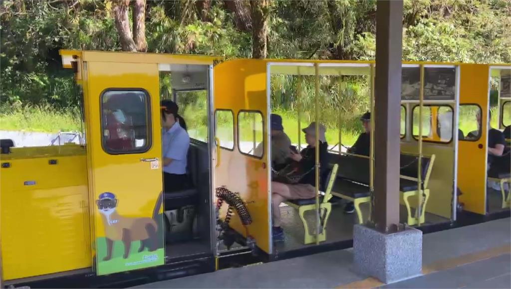 太平山蹦蹦車全線復駛,不少民眾搶搭首班車。圖/台視新聞在乘務員的歡送聲中,太平山蹦蹦車睽違一年的全線首班車順利啟動,黃色車廂在綠意盎然的樹林中穿梭,壯麗的森林山景不僅吸引民眾用眼睛欣賞,更讓不少人紛紛拿出手機紀錄美麗瞬間。蹦蹦車復駛象徵百年林業鐵道再度重現,雲霧山林的經典景致,帶領遊客體驗森林鐵道的獨特魅力。