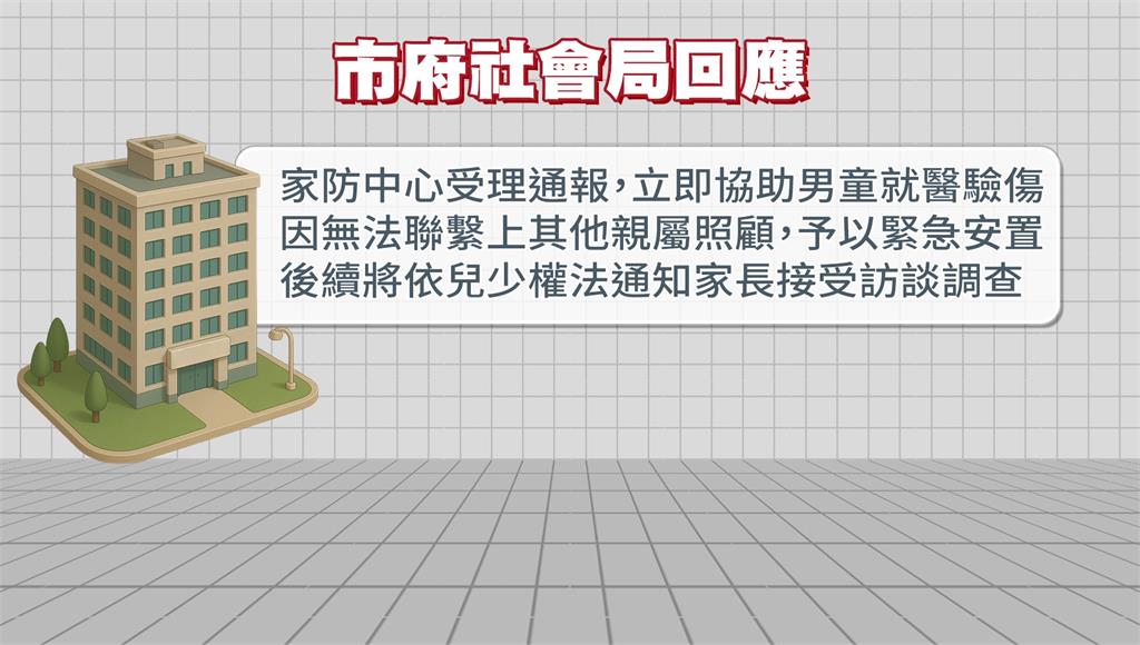 警消獲通報後趕抵現場,發現男童身上有多處瘀傷,隨即協助送醫,所幸男童送醫後意識清楚,社會局也於事後介入,安排驗傷並啟動保護機制,由於無法聯繫到其他親友照顧,社會局已緊急將其安置,並通知其母接受訪談與調查。