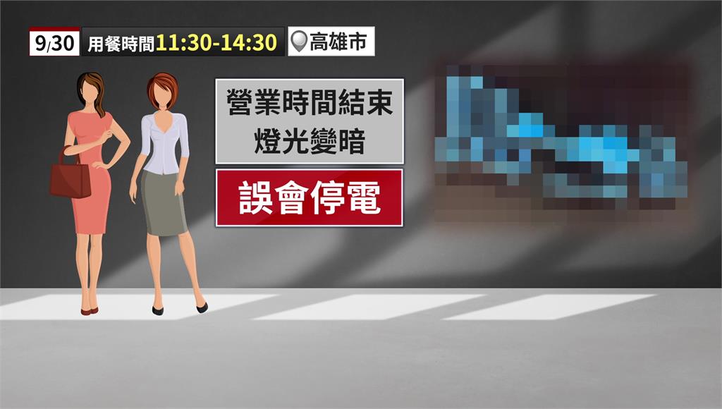 餐廳撤場時間燈光變暗,民眾誤以為停電。圖/台視新聞製圖