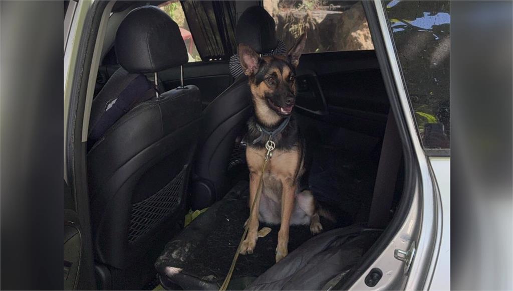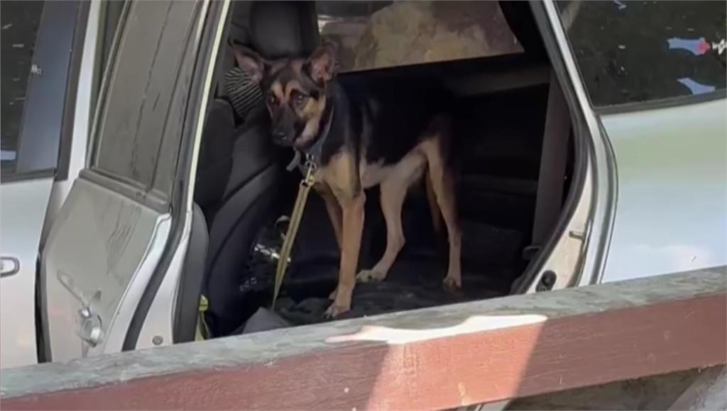 狗狗因綁牽繩被困車內,無法自行脫困。圖/台視新聞救狗志工表示,開車門第一眼,狗狗就從裡面探出頭來,自己還嚇了一跳,但牠看起來已經很沒有力了。狗狗被救出後趕緊給牠喝水,不到10幾秒就喝光了,幸運的是牠在補充水和食物後恢復了力氣。看到狗狗度劫存活,網友同樣感到振奮感動,也希望快快回到主人身邊。