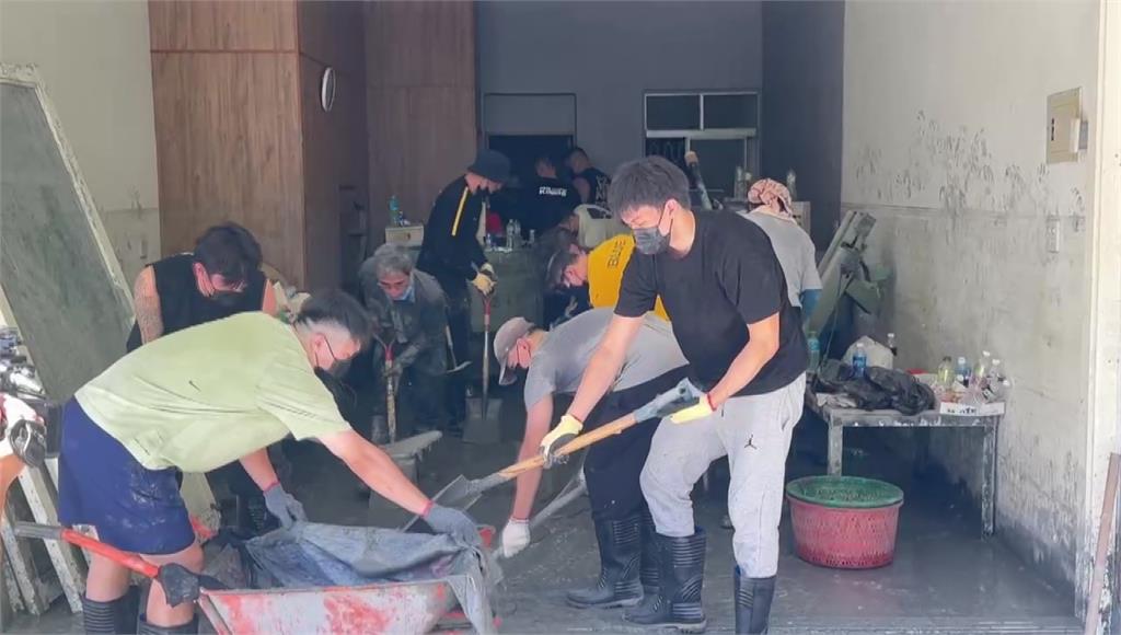 花蓮光復洪災滿地的淤泥還沒清理完畢,許多民眾或藝人投入救災,今日職業籃球「新北國王隊」的球員也參與鏟土行列。球員們今(2)天上午現身光復鄉敦厚路一帶民宅協助清理泥沙,更添一大助力。