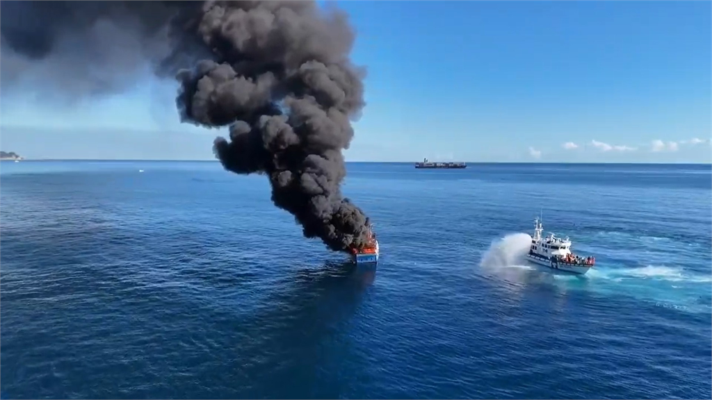 基隆外木山外海今(3)天早上發生火燒船事件,火勢一發不可收拾,濃濃黑煙不斷往上竄,船上7名船員趕緊跳海逃生,所幸最後被全數救起。