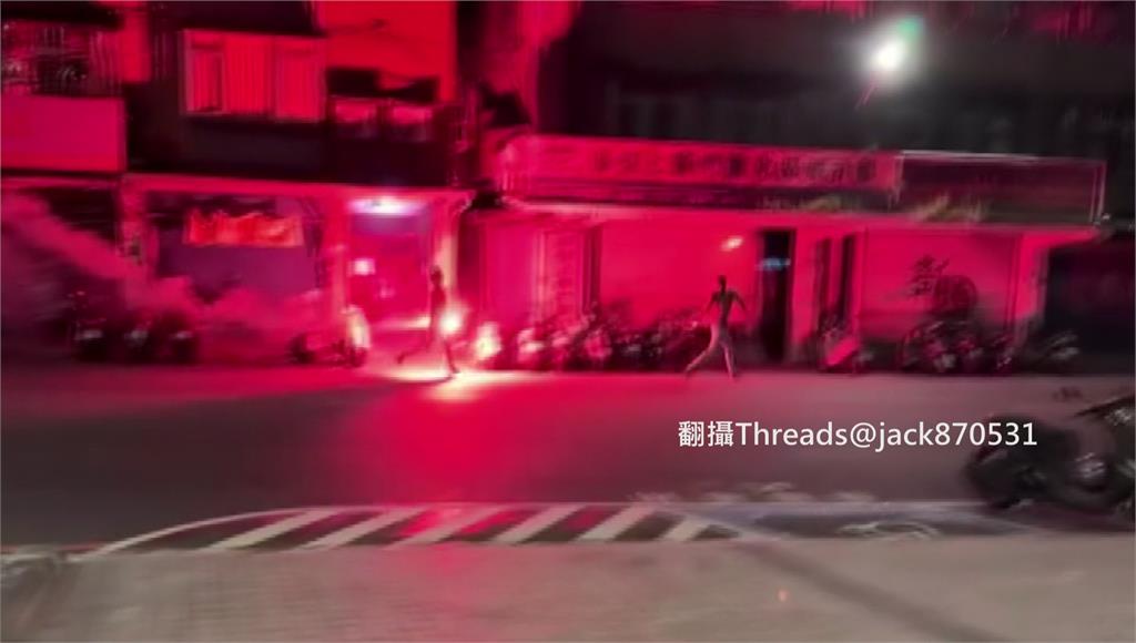 男子一手信號彈、一手拿菜刀追人。圖/翻攝自Threads到底有什麼深仇大恨非要大打出手來解決問題,原來雙方之前是雇傭關係,專門從事冷氣修繕的雲姓男子不滿被解僱,前老闆劉姓男子找了朋友助陣,怎麼談也談不攏,雲姓男子一氣之下直接拿出預藏的菜刀和信號彈攻擊,當場將人砍傷。