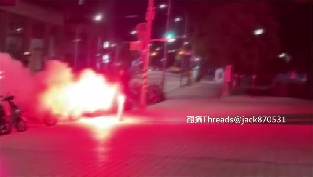 兩人在大街上你追我跑,街頭瞬間全被信號彈照得通紅。圖/翻攝自Threads