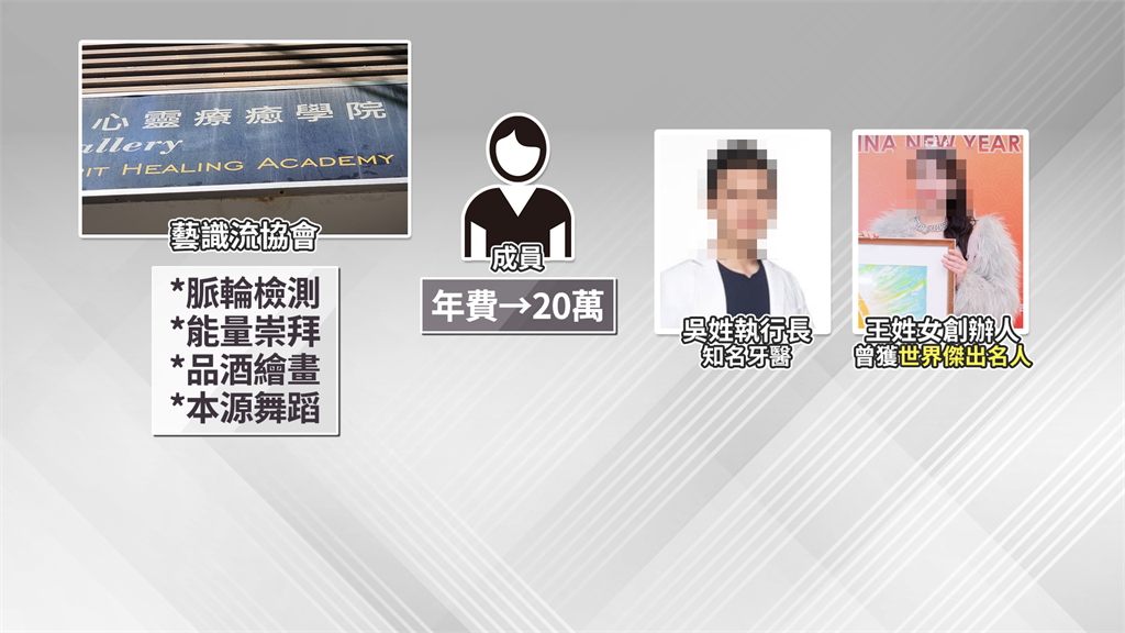 據了解,協會號稱提供「脈輪檢測」、「能量崇拜」等療癒課程,就有學員指出,年費從原本的9000元一路調高到20萬,吳姓執行長也被起底是知名牙醫,王姓創辦人3年前更獲「世界傑出名人」,兩人都是高知識名人,如今涉及過失殺人,重要的監視器畫面卻消失了,檢警將持續調查這宛如精舍命案翻版的離奇命案。