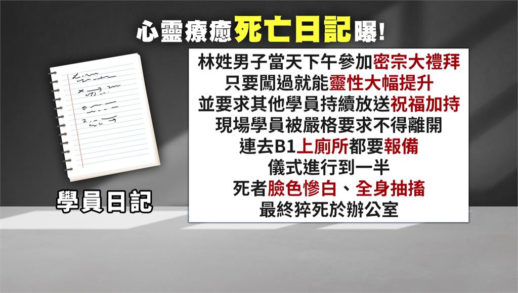 學員日記還原當天「密宗大禮拜」過程。圖/台視新聞執行長是知名牙醫 療癒學院爆命案4人送辦