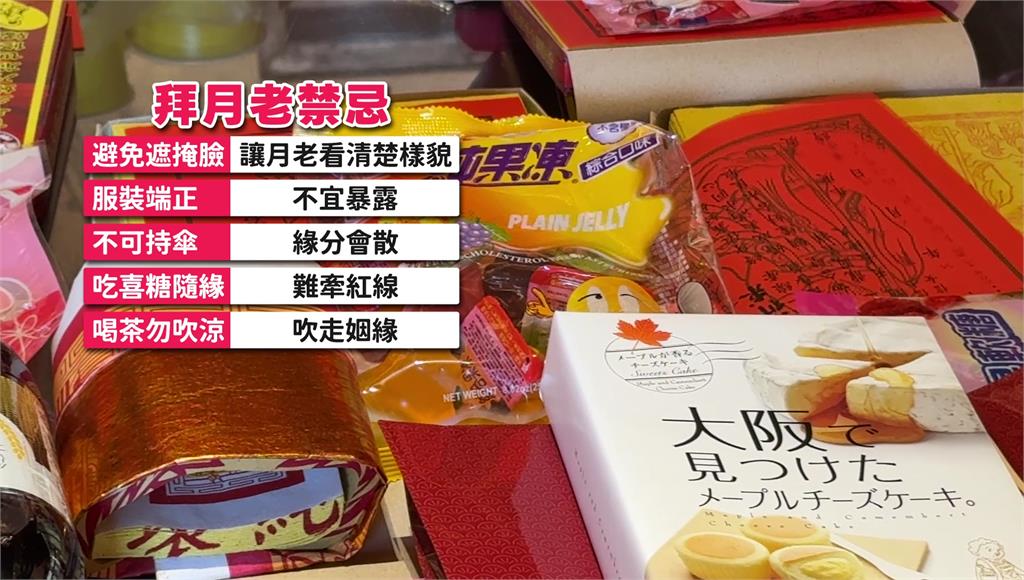 拜月老5禁忌。圖/台視新聞想加持自己的桃花運,供品可以準備鮮花,象徵開花結果,紅棗代表早日成婚,桂圓也可以寓意緣分圓滿順利,最重要的是要先學會愛自己,對的人出現才會懂得珍惜你!