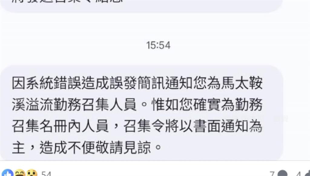 花蓮市府對誤發簡訊道歉。圖/翻攝自笛布斯顗賚臉書原來花蓮縣府的確有意請求中央召集預備替代役男支援救災,但花蓮市公所卻誤發訊息給一般民眾,對此市長魏嘉彥也發文致歉,因委託廠商系統錯誤,誤傳動員訊息,還傳給市立托兒所的500多位家長。
