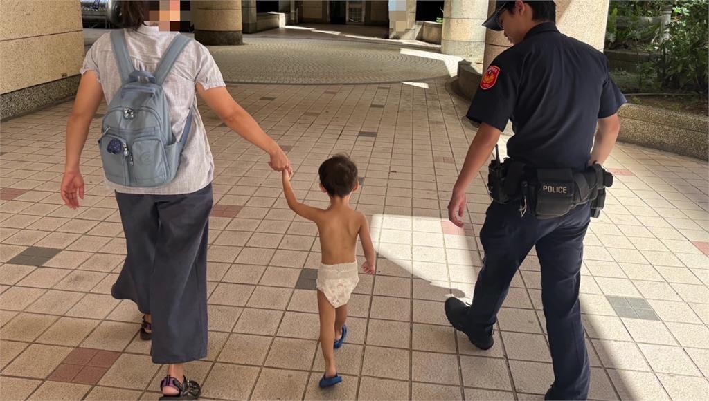 基隆一處社區昨(4)日清晨,突然有一名2歲男童僅穿尿布在中庭閒晃,鄰居立刻報警,調閱監視器後發現,小男童竟是自行按電梯搭至一樓,警察詢問他住哪裡,但正在學語階段的男童說不清楚,最後警方只好與鄰居逐戶查訪,才終於找到焦急的媽媽,讓孩子順利返家。