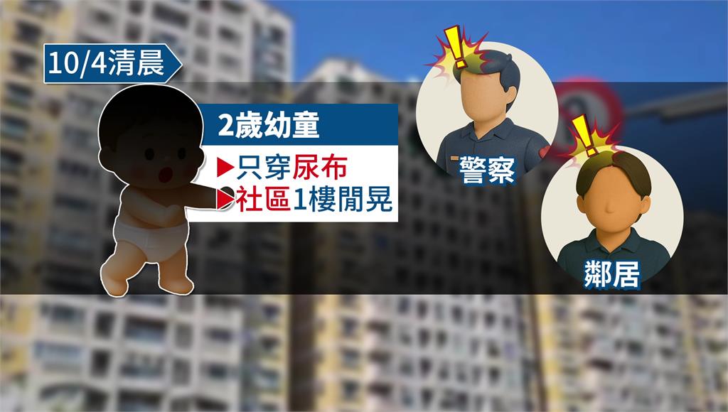2歲男童僅穿尿布獨自外出嚇壞住戶。圖/台視新聞製圖「童言童語」難倒警察 逐戶按鈴尋找「哪家的」
