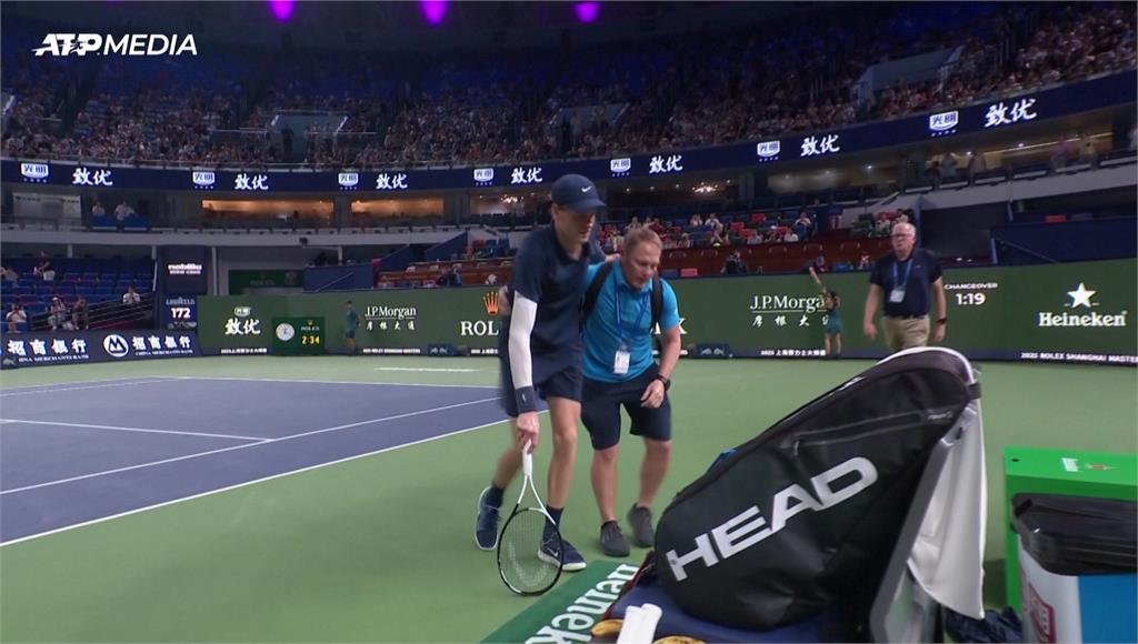 世界排名第二的辛納,去年曾在上海奪冠,但5日在上海大師賽32強賽中,對上荷蘭選手格里克斯普爾,雙方激戰兩個多小時,進入第三盤決勝盤時,辛納在發球後突然步伐一拐一拐,只能借助球拍勉強走回休息區,最終他因右腿嚴重抽筋被迫退賽,無緣衛冕。
