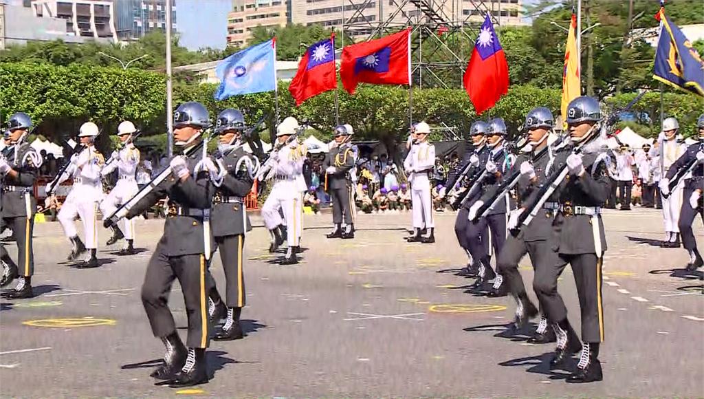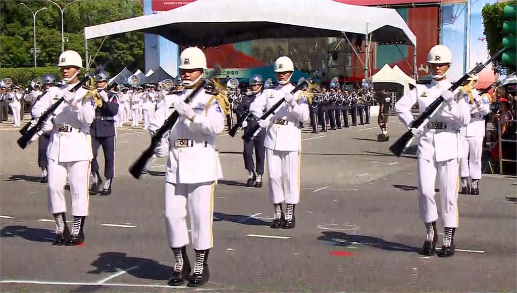 國防部聯合樂隊暨三軍儀隊操演,展現國軍風采。圖/台視新聞