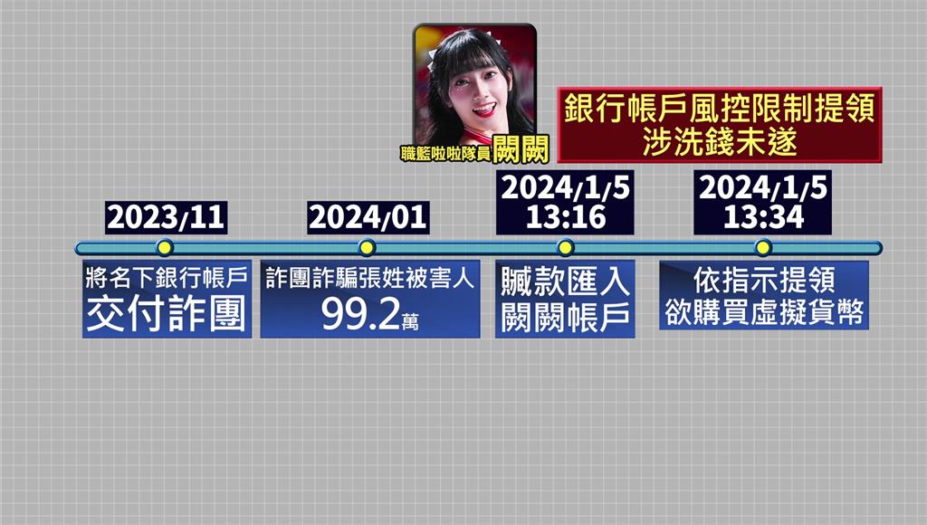 職籃啦啦隊女神「闕闕」近期捲入洗錢案,遭控提供銀行帳戶給詐騙集團,隱匿不法所得,被判刑3月、緩刑2年,不過,闕闕6號晚間在社群澄清,自己是遇到「徵才詐騙」,當下有立即報案,還是被起訴,所屬球團則回應「仍在了解中」。
