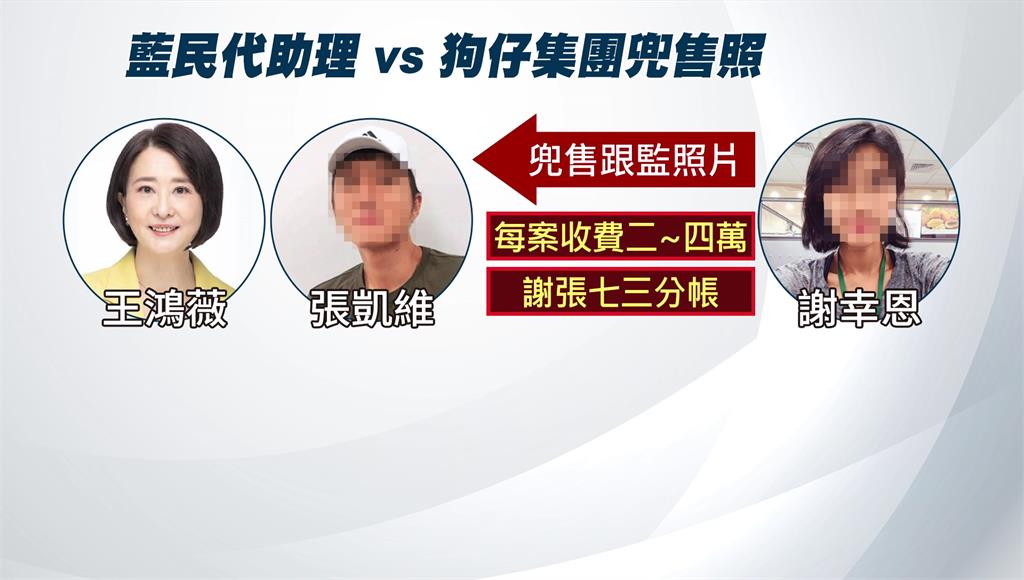 王鴻薇助理遭爆與謝幸恩合作兜售跟監照片。圖/台視新聞製圖爆料照片被爆來自「狗仔集團」 被點名議員否認