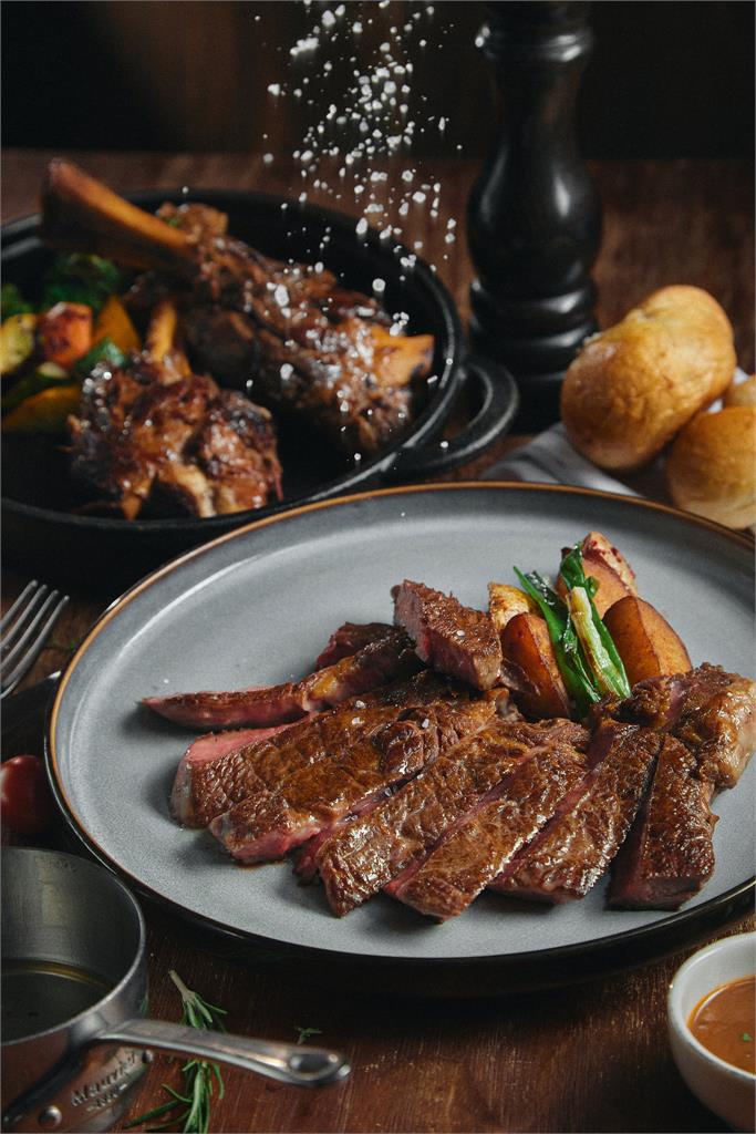 餐點方面,乾式熟成帶骨肋眼24oz是許多人推薦的必點招牌,熟成後的牛肉散發濃郁肉香,搭配綿密的馬鈴薯泥與香濃奶油菠菜泥;許多網美必訪打卡的餐後巨大巧克力蛋糕高達25公分,苦甜交織的可可風味,視覺與味蕾的雙重震撼。