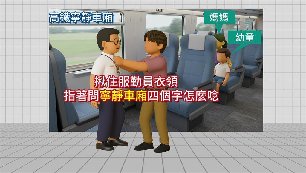 有民眾受不了孩童哭鬧與家長起口角,還抓服勤員衣領。圖/台視新聞對此,婦產科醫師蘇怡寧指出,「寧靜不是排除、是理解」,孩子的哭聲是生命在學習與世界對話。稱自己看到該篇文章相當生氣,表示寧靜車廂原本就不是用來排除孩子的,「台灣高鐵自己也有說明,『對於嬰幼兒、疾病或其他因素影響自主能力的旅客,列車人員將以安撫方式協助』,這是文明不是寬容,是同理不是縱容,寧靜車廂的寧靜從來不是靠誰被壓制而來的,而是每個人都願意多退一步,願意理解旁邊那個也在努力的家長。」