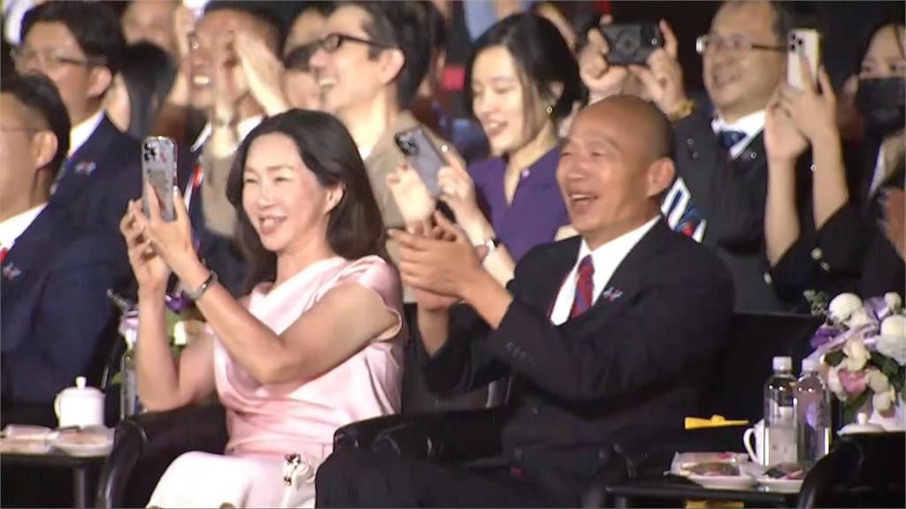 韓國瑜與夫人出席,興奮拍手、紀錄。圖/台視新聞責任編輯/洪季謙