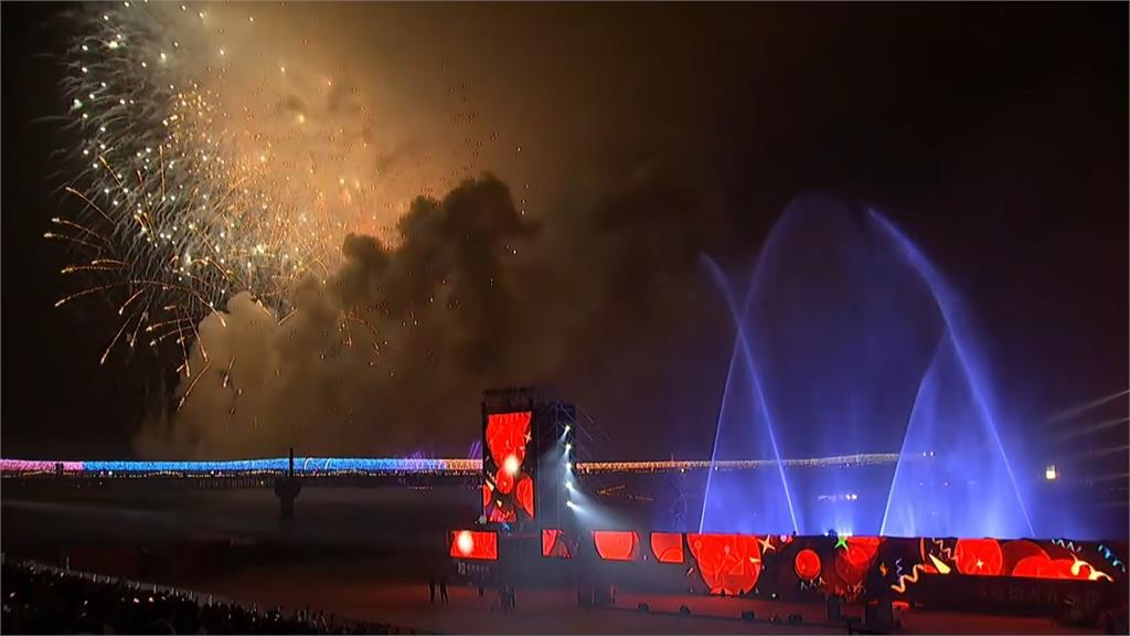 地面水舞搭配空中焰火交織成浪漫美景。圖/台視新聞此外,更有別以往多以交響樂搭配焰火施放,今年度首創雙DJ現場混音配樂,邀請2位台灣知名DJ,蟬聯三屆亞洲百大女DJ妖嬌及MR.GIN演出。節目前段,DJ淑華也上台小露一手,更勁歌熱舞帶動台下觀眾一同隨著音樂搖擺,全場嗨翻。