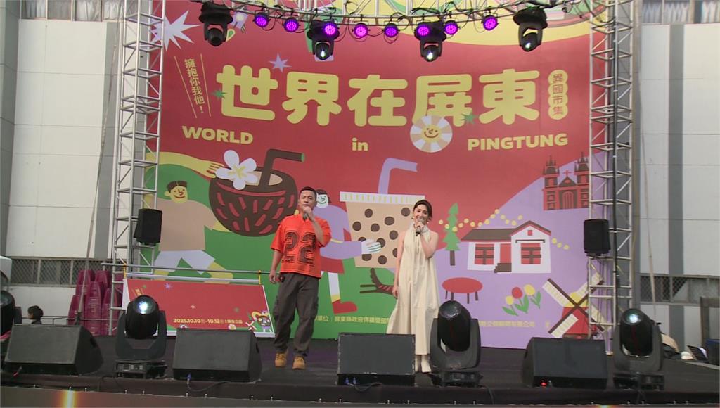 范逸臣與田中千繪演唱〈國境之南〉。圖/台視新聞「2025世界在屏東」異國市集10號盛大開幕,國慶連假為期三天在屏東公園舉行,活動不只邀請超過13國、70攤以上特色攤位,還有異國表演與文化體驗課程,將世界文化精華濃縮在屏東。
