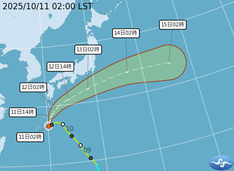 第23號輕度颱風娜克莉路徑潛勢預報。圖/翻攝自中央氣象署展望未來天氣,氣象專家吳德榮也在「氣象應用推廣基金會」專欄文章中指出,根據歐洲模式(ECMWF)模擬顯示,明日至下週五(12至17日)各地晴時多雲、白天炎熱;午後山區有局部短暫陣雨,東半部偶有零星降雨的機率。
