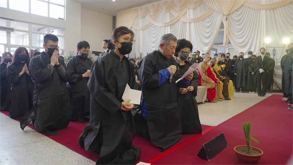柯文哲在父親告別式時只能參加家祭。圖/台視新聞(資料畫面)柯文哲表示,原本交保後要立刻去納骨塔祭拜父親,但是母親認為等農曆7月之後再去,因此只在交保後第三天到了桃園宏願大千世界的父親牌位前祭拜。終於到昨天,是柯文哲第一次到新竹大坪頂納骨堂祭拜父親,照片中能看到柯媽媽、妹妹柯美蘭、妻子陳佩琪都在現場。