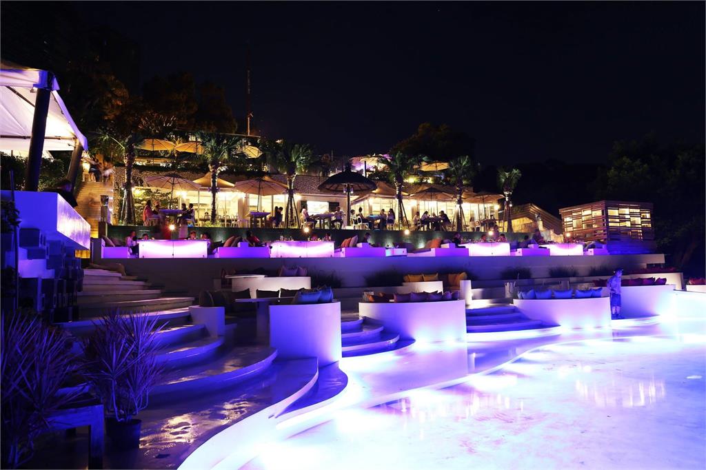 餐廳座位依區域不同,F、H區專供燒烤,A、C、D、E、V區則能品嚐熱炒、合菜或火鍋,Q區的圓形沙發區更是網美與情侶最愛,還有無邊際景觀池,讓你拍出度假感滿分的打卡照片。