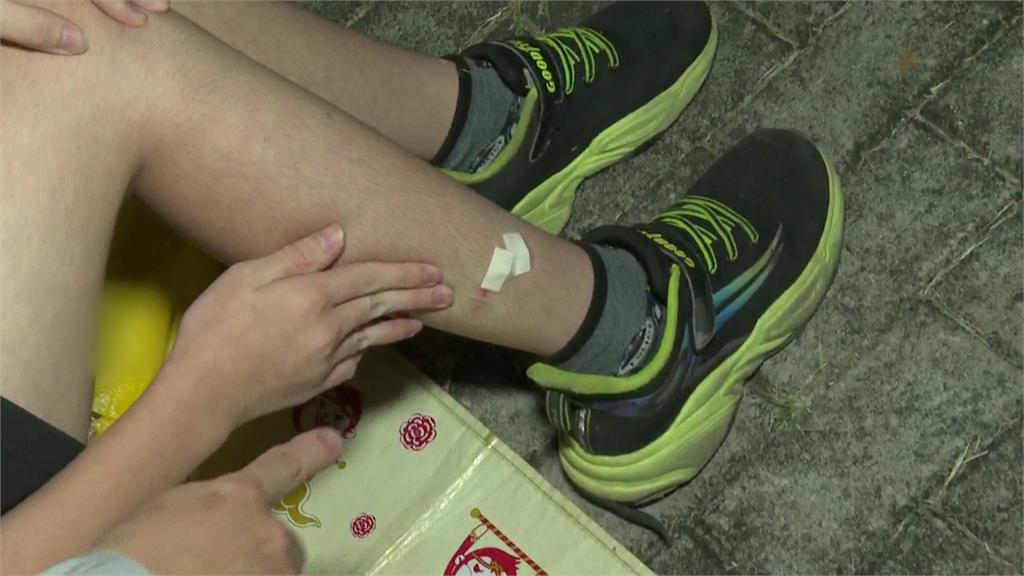 男童腿部遭墜落的無人機砸傷。圖/台視新聞另有民眾在住家附近拍到,其他無人機也降落在田裡,距離民眾僅幾公尺,所幸未造成類似意外。