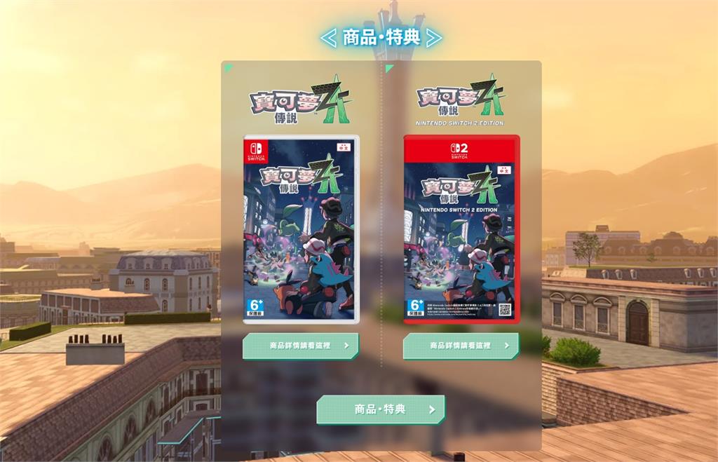 最後要提醒大家的是,此次遊戲實體版有 《寶可夢傳說 Z-A》、《寶可夢傳說 Z-A Nintendo Switch 2 Edition》兩種,前者是適用於第一代Switch主機,後者則是適用Switch 2主機,大家預購遊戲時千萬不要買錯。數位版本也同樣有針對主機提供不同版本。如果玩家主機是Switch 2卻買到Switch版遊戲的話,可以透過加買「升級通行證」,變成Switch 2版本。