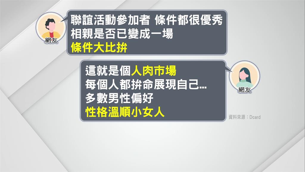 另外,還有網友發文表示,各式各樣的聯誼活動中參加者條件都相當優秀,不禁好奇相親是否已變成一場「條件大比拚」。對此,就有女網友留言直呼就是個「人肉市場」,每個人拚命展現自己,但現實就是彼此都看不上,還發現多數男性偏好性格溫順小女人,但真的是如此嗎?