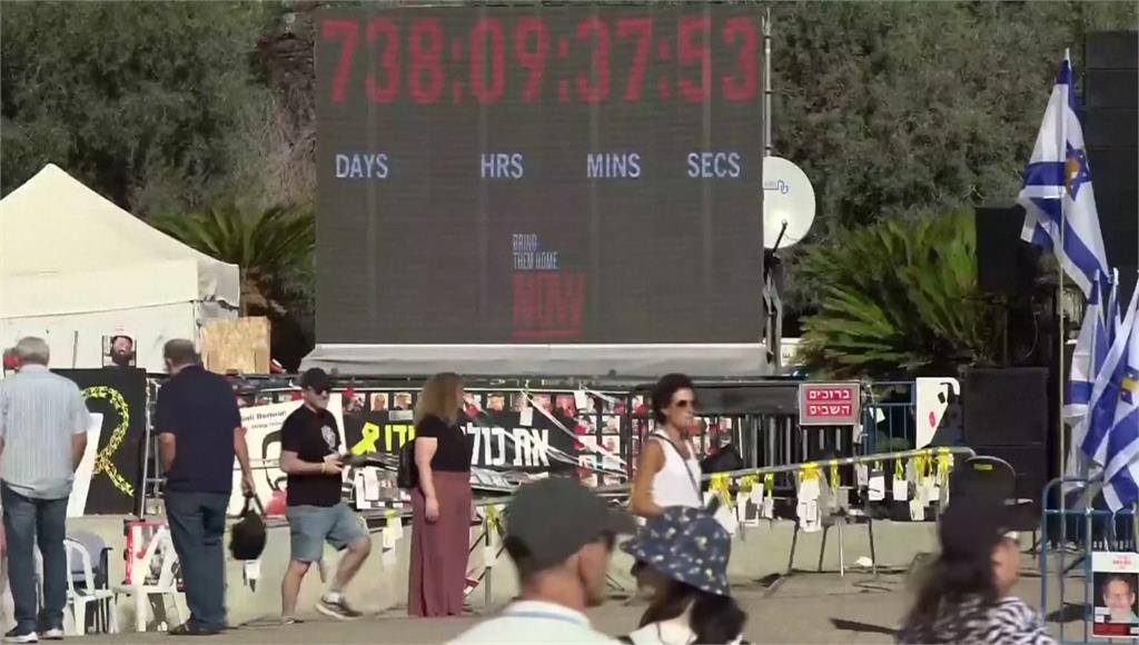 以色列人質廣場的看板持續計時。圖/美聯社、路透社、CNN關閉拉法口岸 以國進加薩人道物資數量砍半