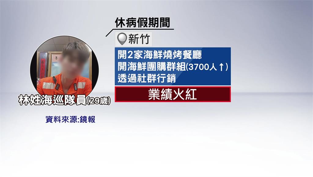 海巡還在請假期間開餐廳,業績相當火紅。圖/台視新聞誇張的是,他在養病期間,不但在新竹開了2家海鮮燒烤餐廳,還大搞人數超過3700人的團購群組,透過社群平台行銷,業外收入一樣賺飽飽。他先是在去年11月21號,拿出公立醫院開的「病患須在家長期休養」診斷證明,前後請假3次,至今仍在休病假,不過爆料傳出後,海巡署艦隊分署決議,認定他的確請病假又兼職,明快記出兩大過免職處分。