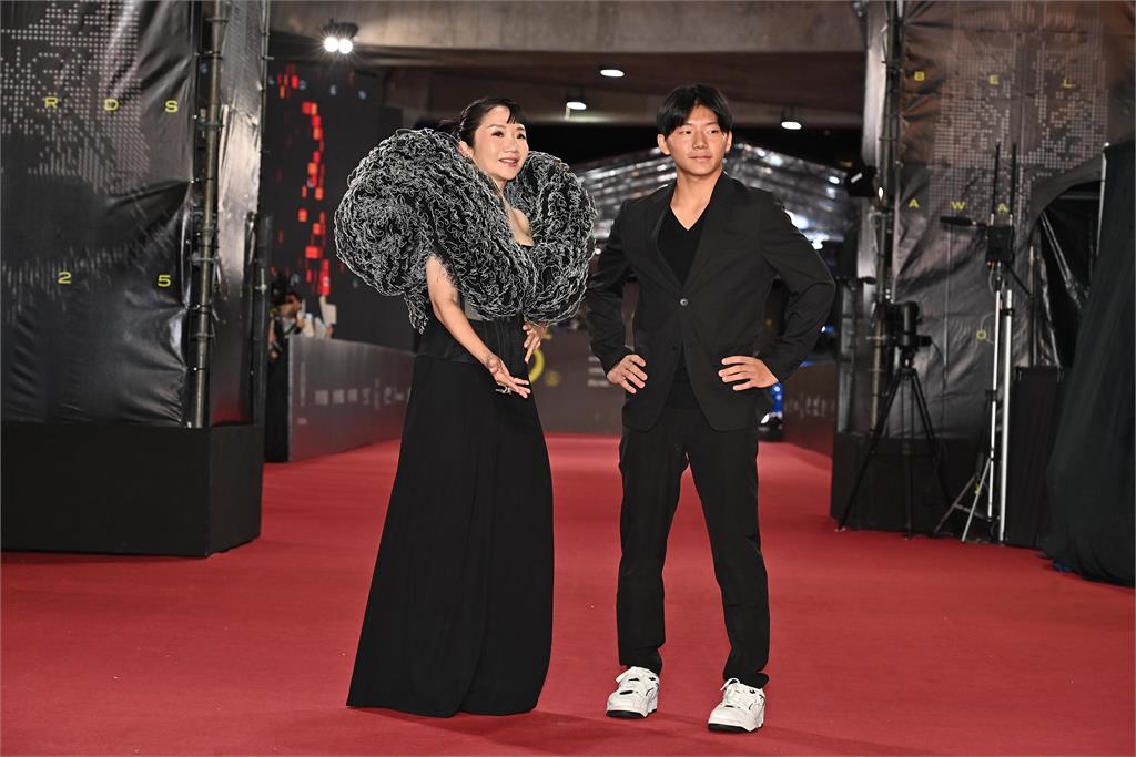 第60屆金鐘獎節目類頒獎典禮今(17)日在台北流行音樂中心盛大登場,紅毯星光熠熠,眾多大咖藝人紛紛現身,以《虎姑婆和他的朋友》入圍「兒童少年節目主持人獎」的陶晶瑩,特別帶上兒子一同走上紅毯,成為全場焦點。陶晶瑩以浮誇的灰色造型披肩搭配黑色褲裝,氣場十足;兒子則穿著俐落的黑色西裝登場,陽光膚色與帥氣五官完全是遺傳爸爸李李仁,母子倆在紅毯上的逗趣互動,也展現出溫馨又自然的親子情誼。陶晶瑩和兒子一同走紅毯。圖/三立電視畫面提供責任編輯/蔡尚晉