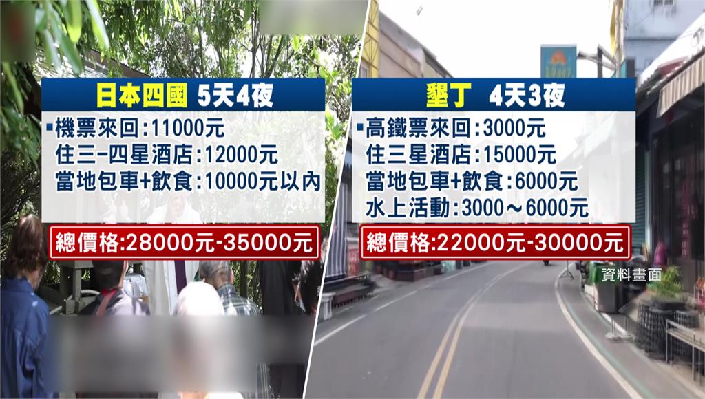 日本5天4夜和墾丁4天3夜價格差距不大。圖/台視新聞開南旅行社總經理陳建欽提到,旅行社還有一個行規,訂房超過8間以上,飯店還會有團體價折扣,確實出國比較划算,其中飯店的部分,連續假期在台灣的價格高不可攀。