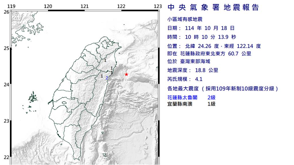 臺鐵公司說明,10:04在花蓮縣政府東北東方56.9公里(位於臺灣東部海域)發生芮氏規模5.3地震,和仁4級,和平=崇德間按4級地震規定辦理。南港、宜蘭、蘇澳新、南澳各3級,台北=七堵間、礁溪=和平間按3級地震規定辦理。