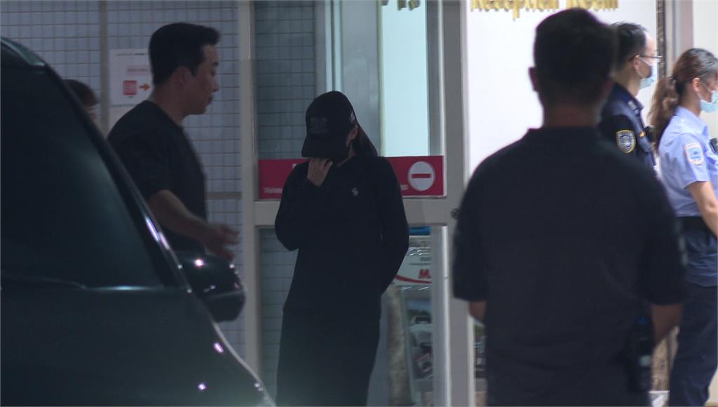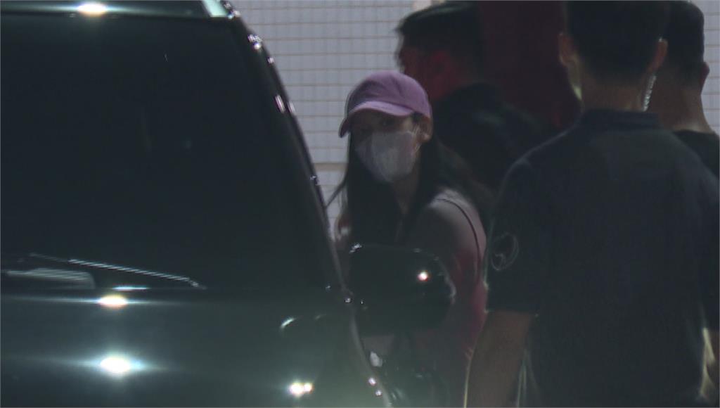 Jisoo身穿淡粉色薄長袖率先步出機場。圖/台視新聞