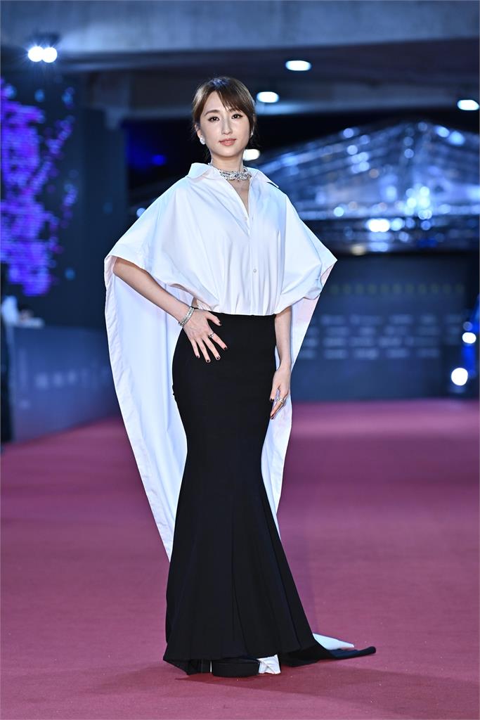 以《童話故事下集》中林宜玲一角入圍第60屆金鐘獎戲劇節目女主角的柯佳嬿,今(18)日晚以一襲黑白極簡造型走上星光紅毯。她身穿白色立體剪裁襯衫式上衣,後襬延伸長布料形成披風感設計,行走間輕盈飄逸,與黑色長裙形成俐落對比。