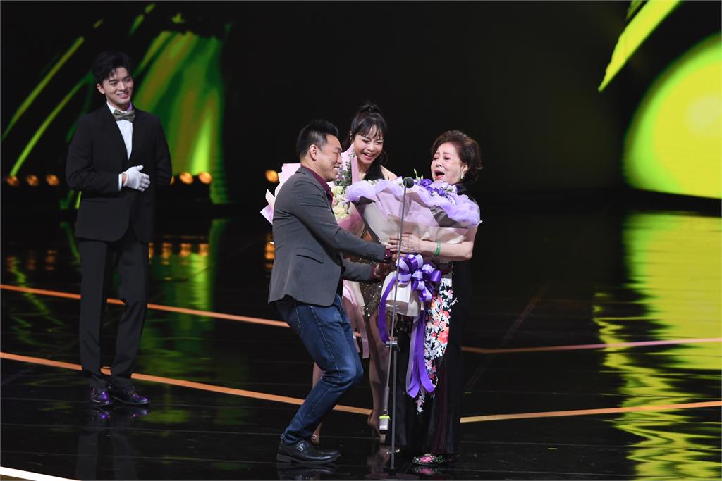 陳淑芳收到兩大花束,急喊拿不動。圖/三立電視畫面提供陳淑芳也自豪現在可以站在台上跟大家對話,且她以前的同學也前來支持,感謝大家給她這個榮耀,「沒有你們的力量來支持我,我一定早就跑掉了」。最後也有人上台送上兩大花束,讓陳淑芳急喊「這兩束花我哪拿得起來,趕快有人來幫我拿吧」。