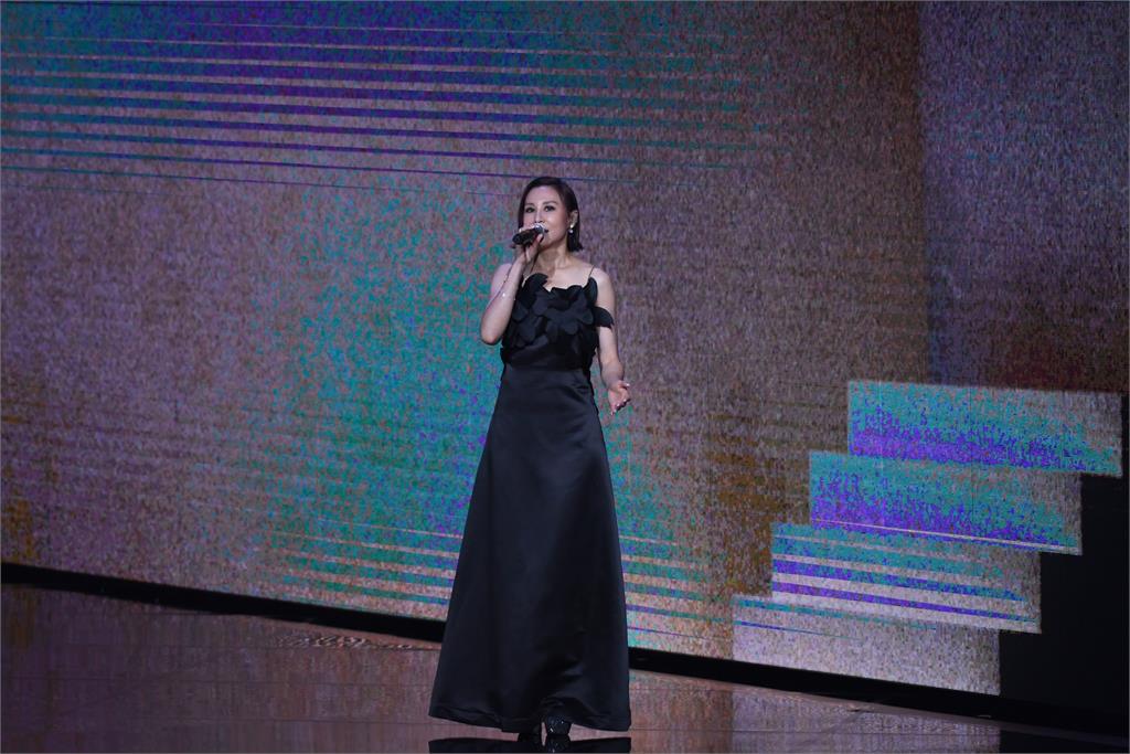 林凡在金鐘獎表演。圖/三立電視畫面提供而潘越雲則演唱《忘不了》、《幾度夕陽紅》等歌曲,搭配管弦樂團的悠揚樂音,掀起五、六零年代電視人的回憶。
