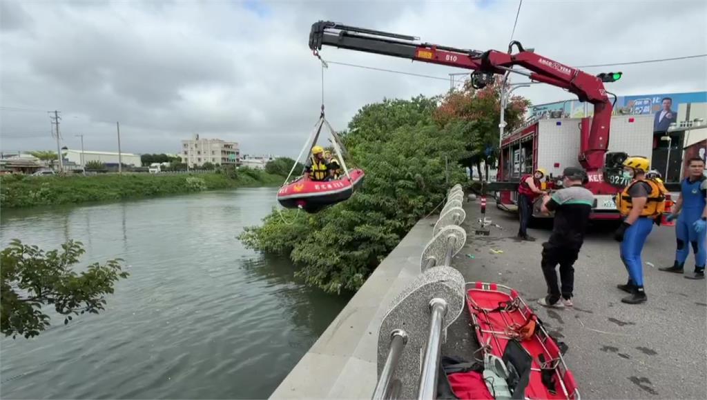 彰化婦人跌落大圳溝,丈夫下水救援卻雙雙溺水。圖/台視新聞 14:55更新彰化市環河街發生一起驚險的溺水意外!一名婦人不慎失足跌落一旁的洋厝排水圳溝,丈夫見狀立即跳下水搶救,卻在嘗試拉起妻子時雙雙溺水,目擊者見狀立刻報警。警消今(20)日上午9點43分接獲通報後,緊急調派各分隊前往救援,兩人被救起時已無生命徵象,緊急送醫搶救後婦人仍宣告不治,丈夫則恢復心跳,在加護病房搶救。據了解夫妻倆是騎車一前一後到達事發現場,詳細落水原因仍有待進一步調查。消防隊乘坐橡皮艇救援。圖/台視新聞責任編輯/網路中心