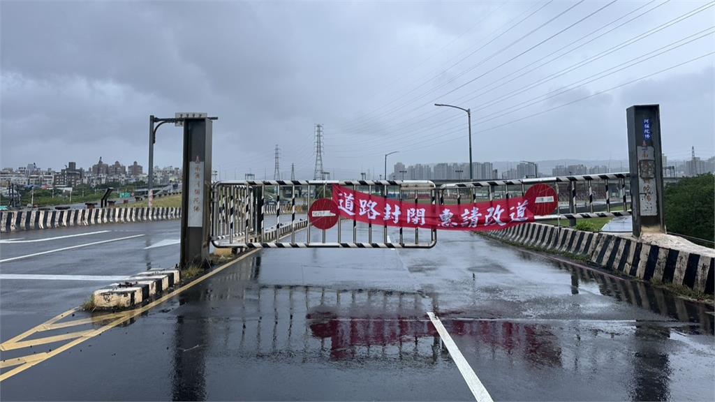 疏洪一路淹水導致轎車拋錨。圖/台視新聞 受到豪雨影響,新市五股疏洪一路的疏洪道內道路積水,有輛小客車深陷其中,水還淹進車內,導致車輛拋錨,車門也打不開。消防人員乘坐橡皮艇救援,將車內2人及1犬救出,所幸均無受傷。新北市府公告,因今(20)日豪大雨及抽水站抽水,再加上大潮影響,二重疏洪道已積淹水,將管制疏洪十路以北區域必要路段及越堤道。市府已派員進行上開路段道路管制,提醒民眾切勿強行進入封閉路段,並提早配合改道,以確保安全。五股蘆洲越堤道封路。圖/台視新聞二重疏洪道疏洪十路以北封閉管制。圖/新北市政府提供責任編輯/施佳宜