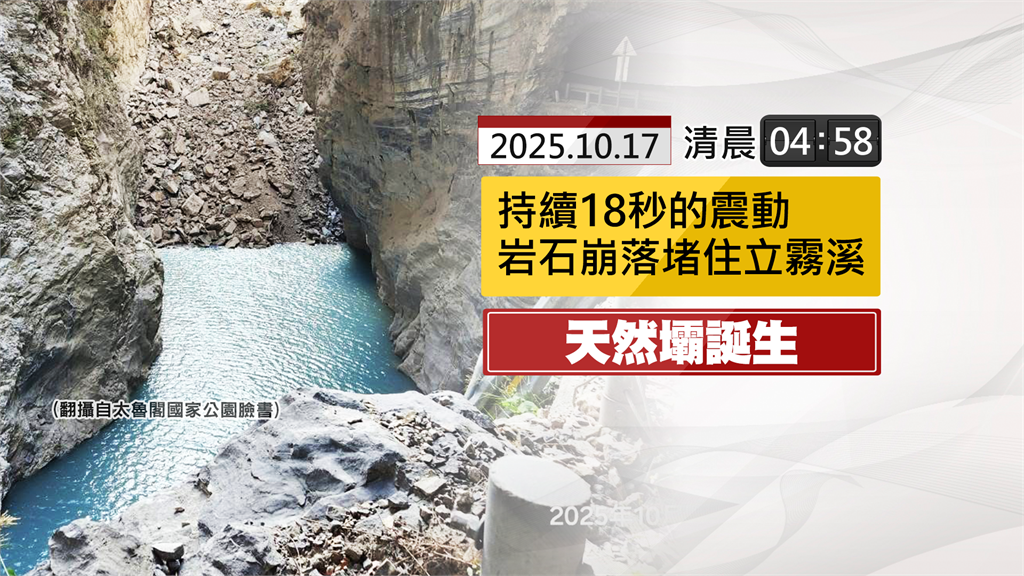 10/17清晨測到18秒震動形成天然壩。圖/台視新聞傳拍照人氣地標「酋長岩」淹了 太管處否認
