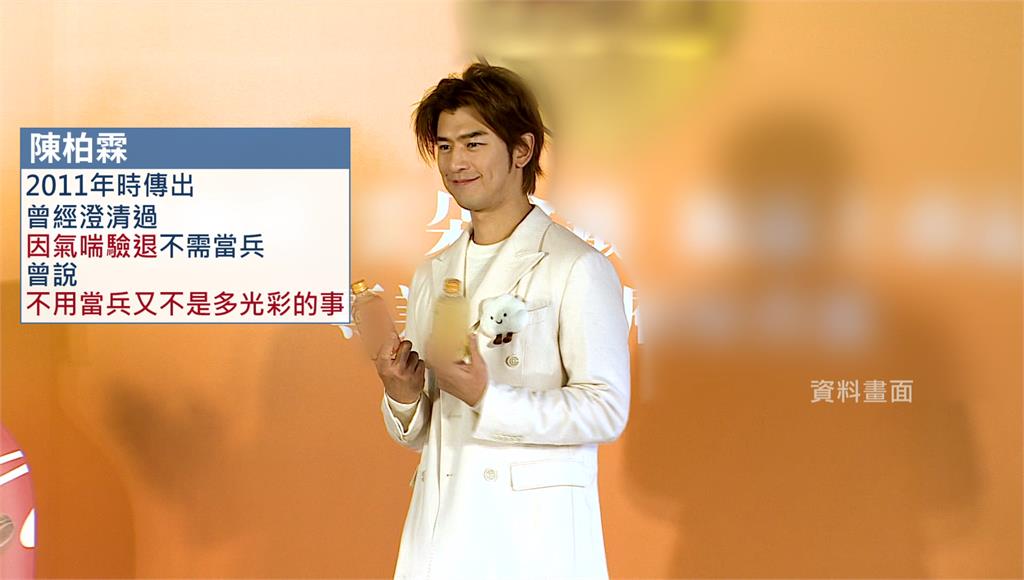 而這回遭檢調拘提的名單中,陳柏霖也傳出爭議,因為偶像劇角色大仁哥爆紅的他曾經敲響金鐘,但2011年就曾捲入閃避兵役的爭議,當時稱自己有氣喘所以驗退,還說「不用當兵又不是多光彩的事」!