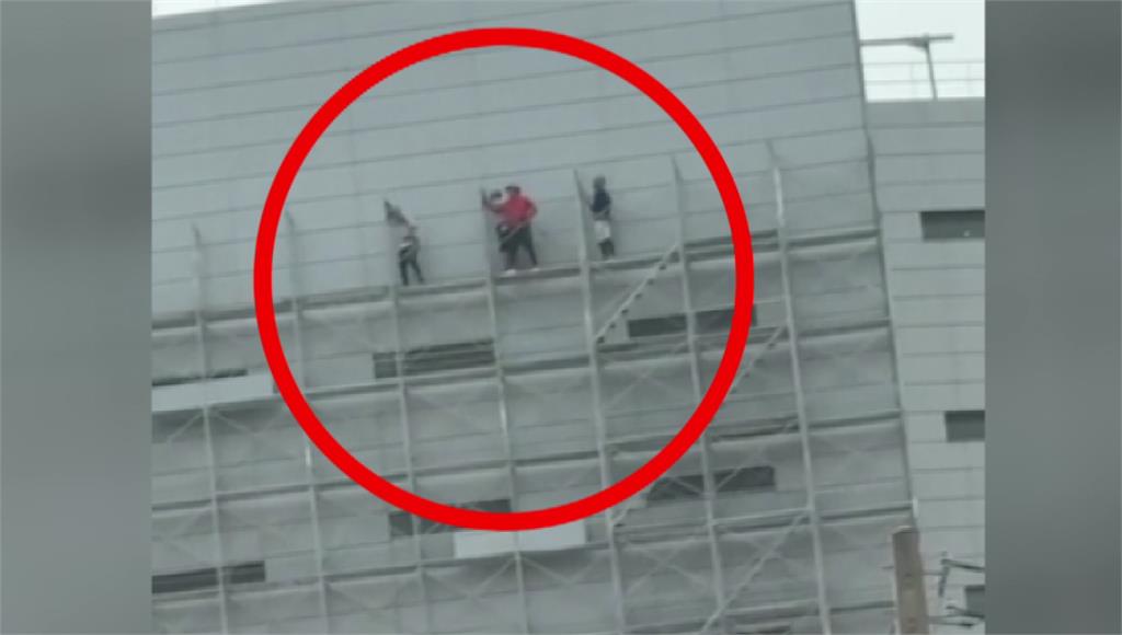 工人站「9樓高鷹架」無防護,勞工局將派員調查。圖/台視新聞 高雄一處興建中的工地,工人站在約9層樓高的鷹架上作業,身上卻沒有任何防護措施,僅配戴工程帽,4名工人排排站,距離地面目測超過25公尺,令人看了不禁腳底發麻。該工地是民間殯禮業者的建設項目,勞工局檢視影片,針對勞工未使用安全帶等防墜落防護措施,雇主涉嫌違反職安法,將派人進一步調查,倘若查證屬實,雇主將面臨3萬到30萬元的罰款。工人站在約9層樓高的鷹架上作業,身上卻沒有任何防護措施。圖/台視新聞高雄/綜合報導 責任編輯/網路中心