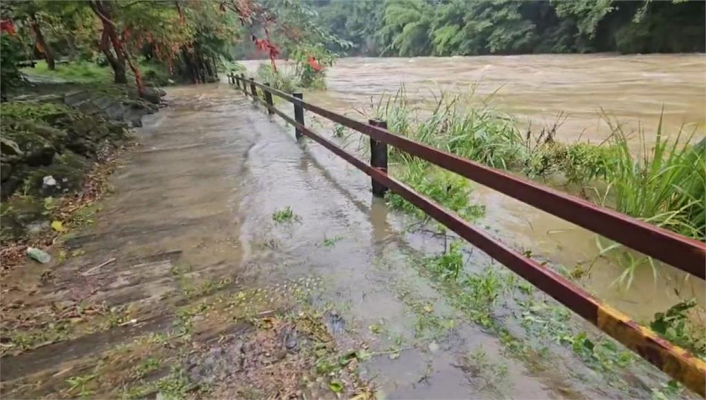 不僅十分瀑布水量暴漲,基隆河水位也滿溢至路面,夾帶土石,形成滾滾黃泥流,沿岸低窪地區還出現淹水及土石滑落的情況,台鐵公司宣布,受到持續強降雨影響,為確保行車安全,自20日起,平溪線暫停列車營運,將視路況穩定後再恢復行駛,同時也啟動公路接駁,協助旅客往返平溪線各站,請旅客多加留意。