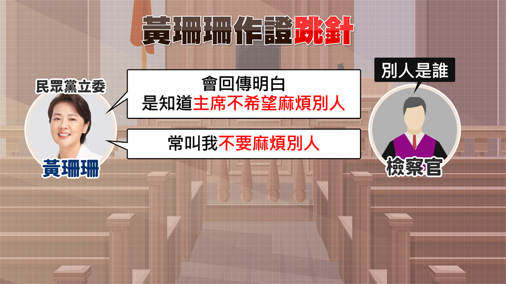 另外黃珊珊針對「小沈已給過」跳針回覆,「會回傳明白」是因為知道主席不希望麻煩別人,檢察官二次追這「別人」是誰,黃珊珊都重覆回應「常叫我不要麻煩別人」。